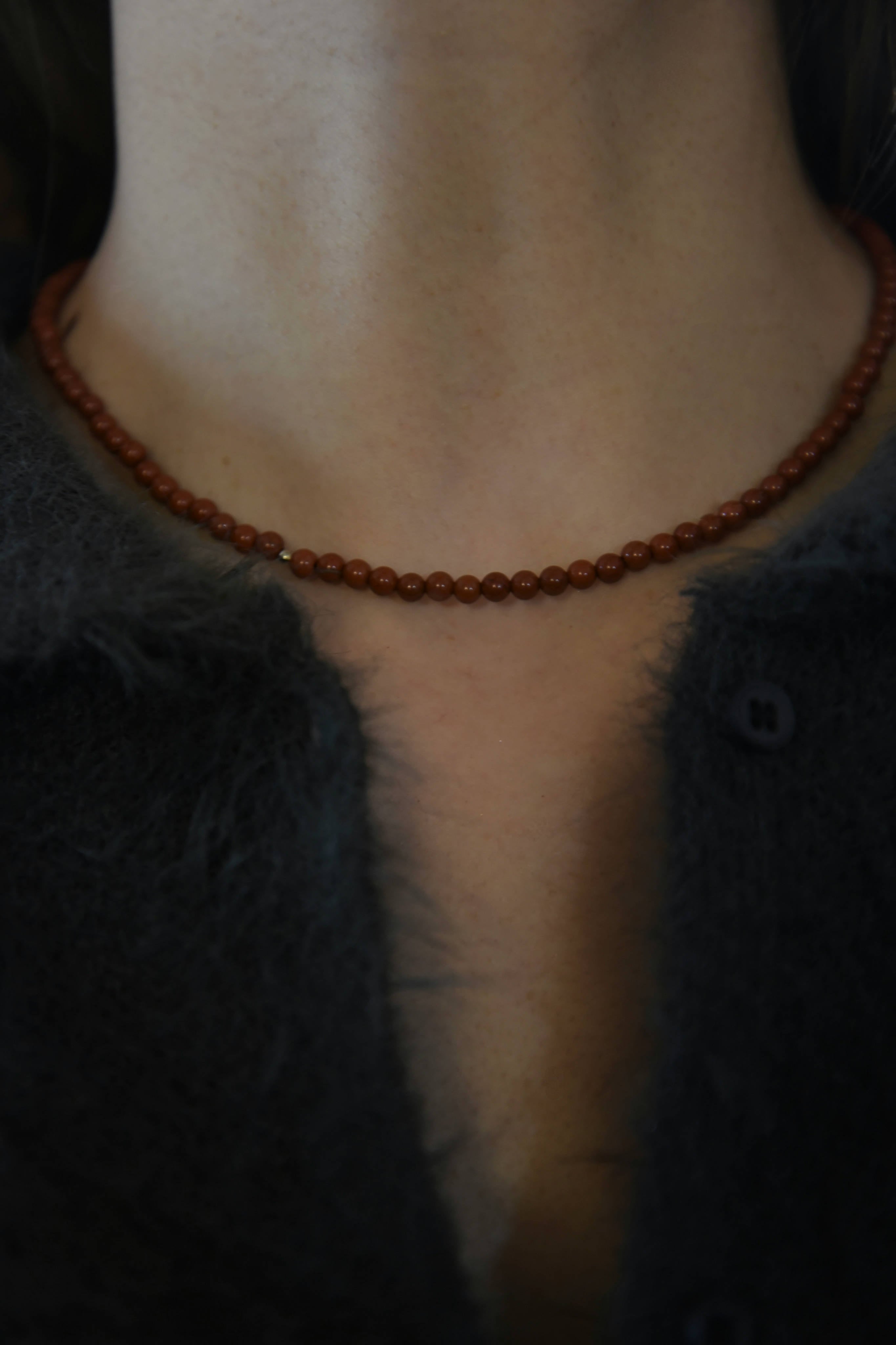 (レッドジャスパー石ビーズ、真鍮パーツ)