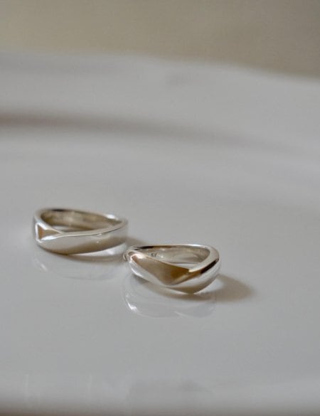 美しく曲線が添い重なり合うようなvリングデザイン。